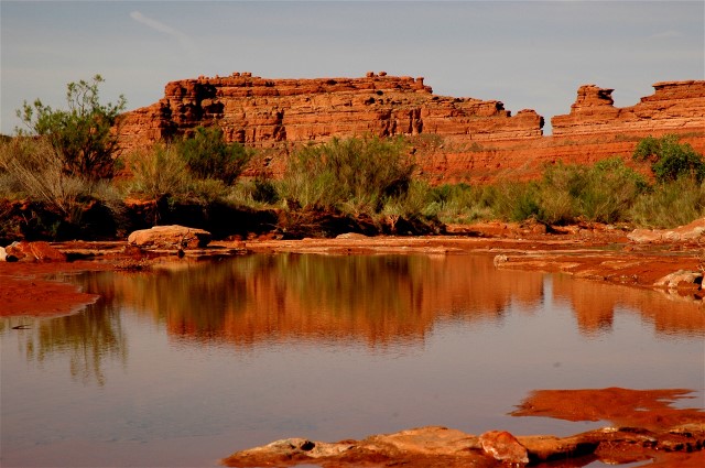 It is a mistake to think that deserts never have water. Beautiful and reflective waters make a powerful team with the stark reality of the rocks.