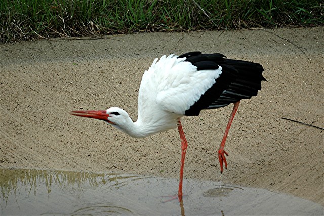 While this bird is not caged, it is a zoo creature. I enjoyed its antics as it walked around the “cement pond” (shades of the Beverly Hillbillies).