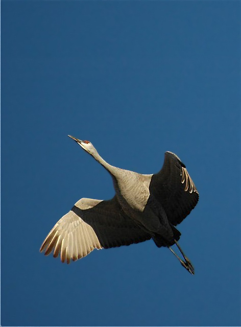 First we have a Sandhill Crane ascending into the cold blue skies above.