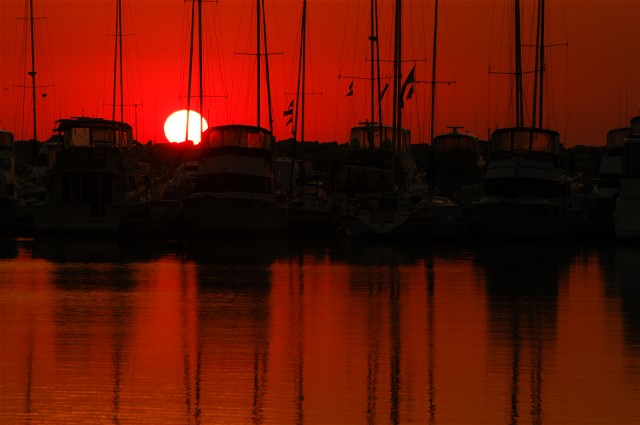 A composition which uses the red sky, as somewhat of the centerpiece, and dark areas at various points around the red, is something I have found to be accepted by most aficionados of the art of sunrise/sunset.
