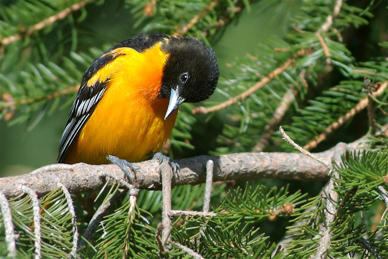 A male Baltimore Oriole. A striking bird and a good pose.