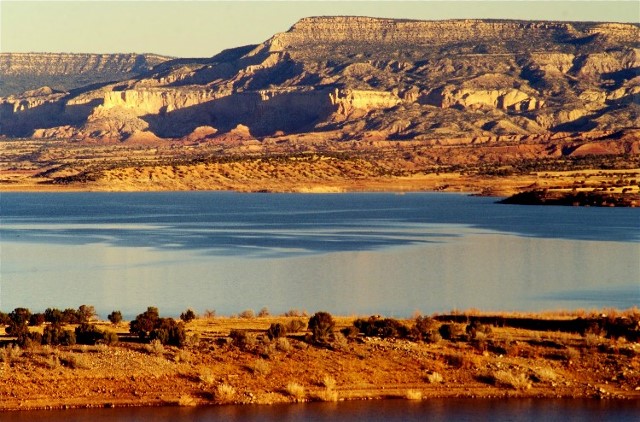 The rising sun bathed this New Mexico land and lake, in breathtaking light. I was on a small mountain when I made the image.