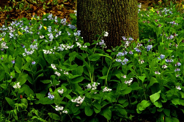 Spring too is a delight. These flowers (Virginia Bluebells) in spring greenery, make a nice statement about that season in my native state of Wisconsin