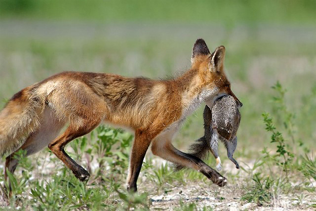 Two mammals, one alive and one dead for dinner. A Red Fox and a squirrel I believe.