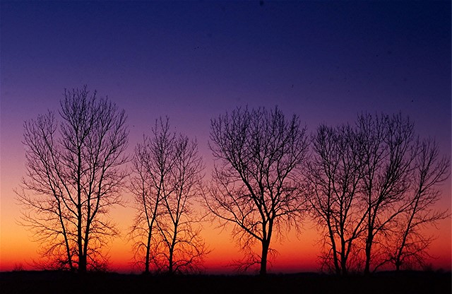 Then again, the time of year means little when it comes to the rising or setting sun. Both subjects are tied to warm colors. Gold and reds are the stars of the color parade.