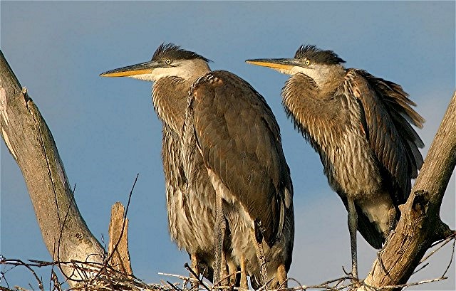 Kestrel, Snowy Owl & young Great-blue Herons.