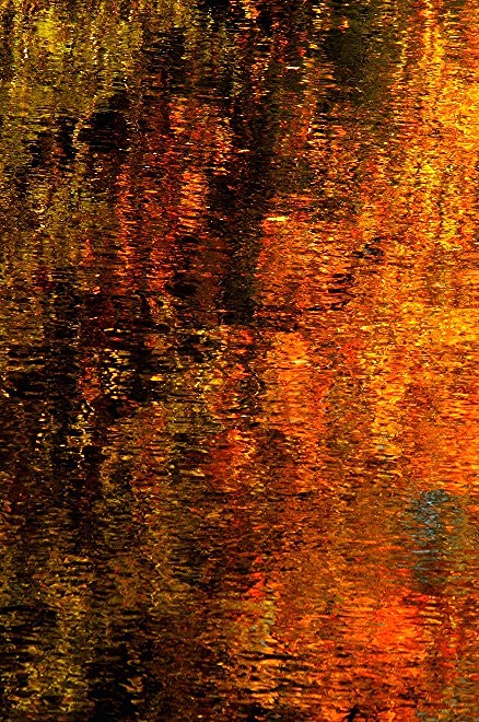 A somewhat rippled stream of water. With autumn colors creating patterns, makes for a nice “abstract” vision. Yes, I did often search just for such combinations ir order to create an abstraction.