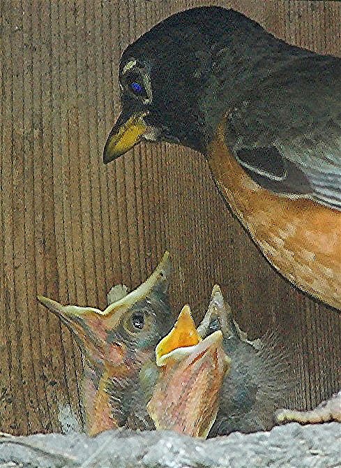 Now some more for the birds. Mama and babies in a man built nesting box. They are Robins.